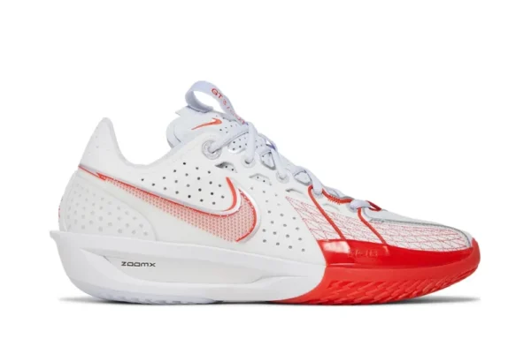 The Air Zoom GT Cut 3 in White Picante Red is a testament to innovation and performance in the world of basketball sneakers. This edition features a sleek, white-based upper that serves as a pristine canvas for the vibrant picante red accents, creating a visually striking contrast that’s both elegant and energetic. The sneaker’s design is not just about aesthetics; it’s built with the latest in performance technology, ensuring that it meets the demands of high-level play.