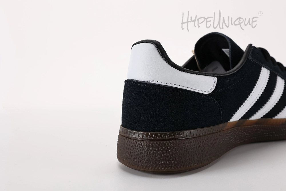 The adidas Handball Spezial in Black Gum is a stylish sneaker that pays homage to indoor sports heritage with a sleek and minimalist design. These shoes typically feature a durable suede upper in black, accented by the iconic three stripes in contrasting white leather along the sides.